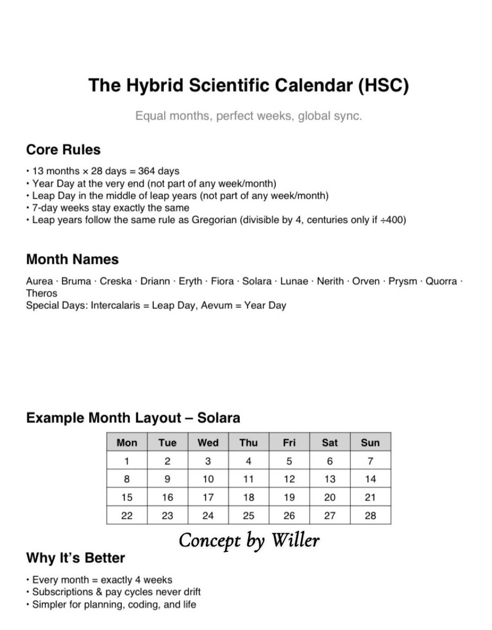 Weekdays stay aligned, Intercalaris + Aevum sit outside the week.